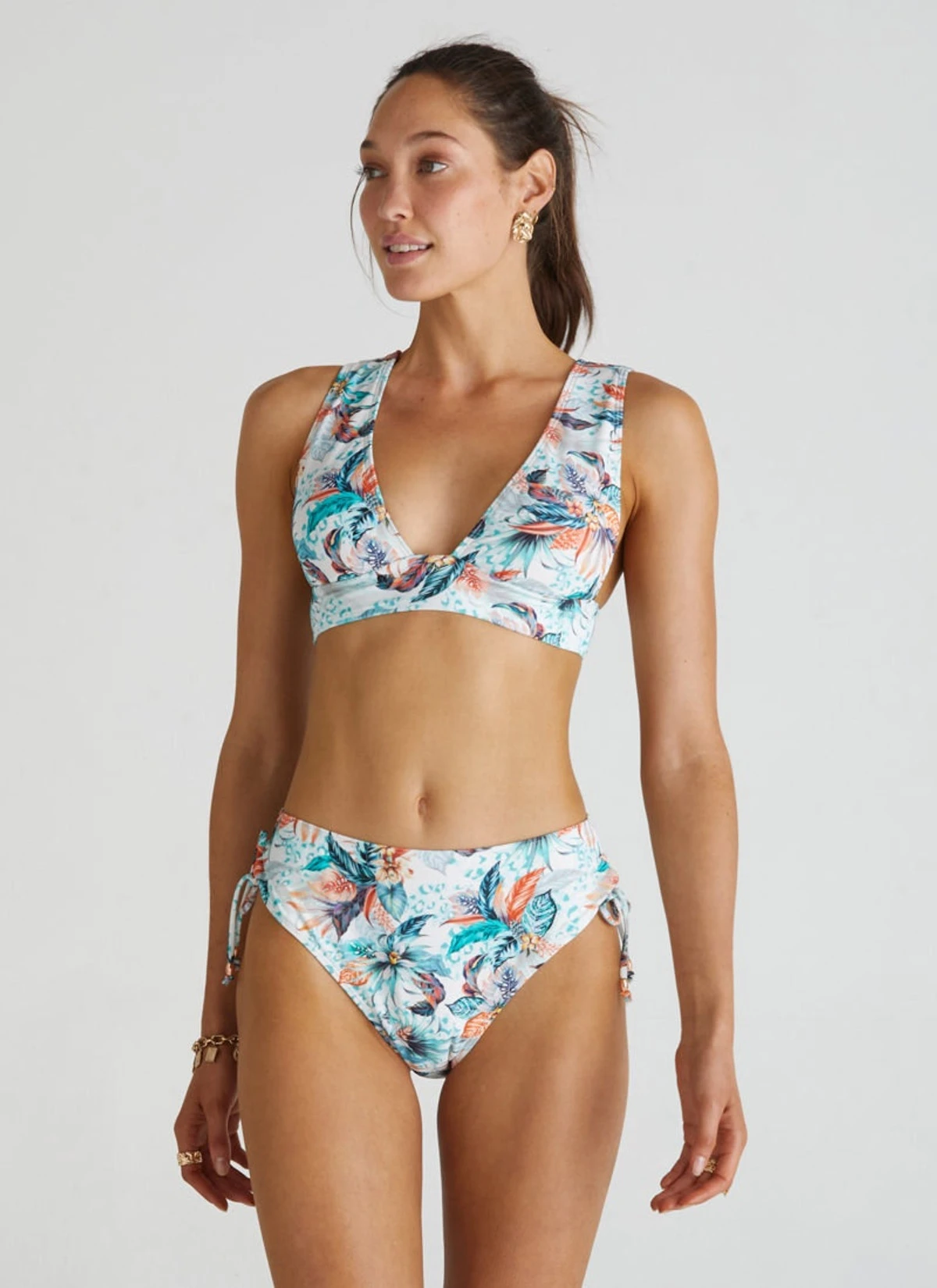 Made from recycle fabric, the Selena Top is the ultimate bikini top featuring comfortable over the shoulder straps, V-plunge neckline and an open square back design.