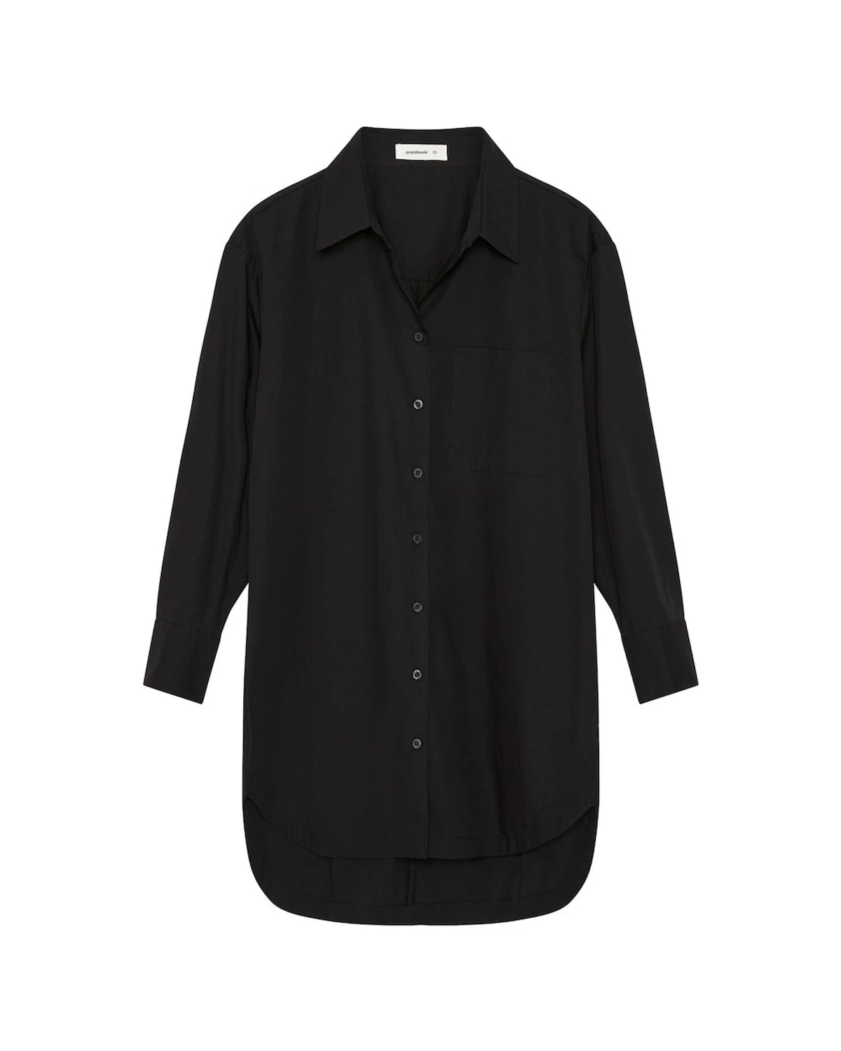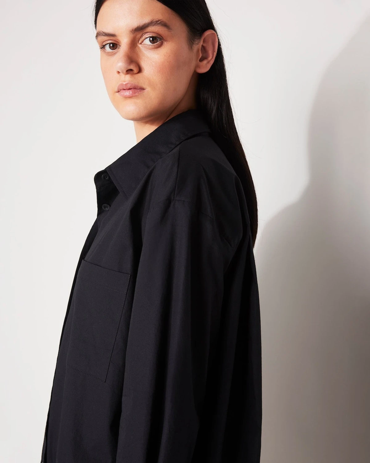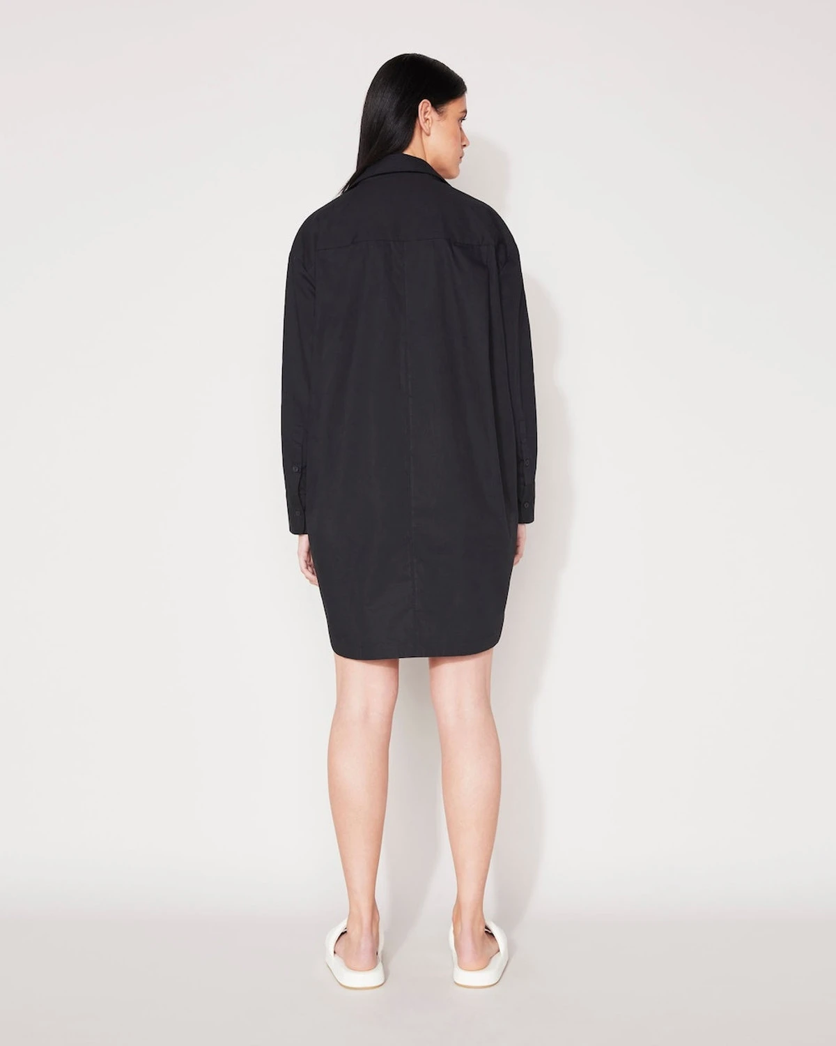Crafted in a crisp 100% Cotton Poplin with an oversized fit and shaped step hem, the shirt dress is essential to the modern wardrobe. With classic shirt detailing, choose to style it open over jeans and a tank.