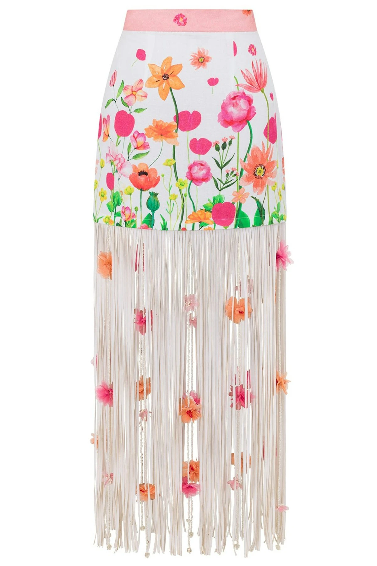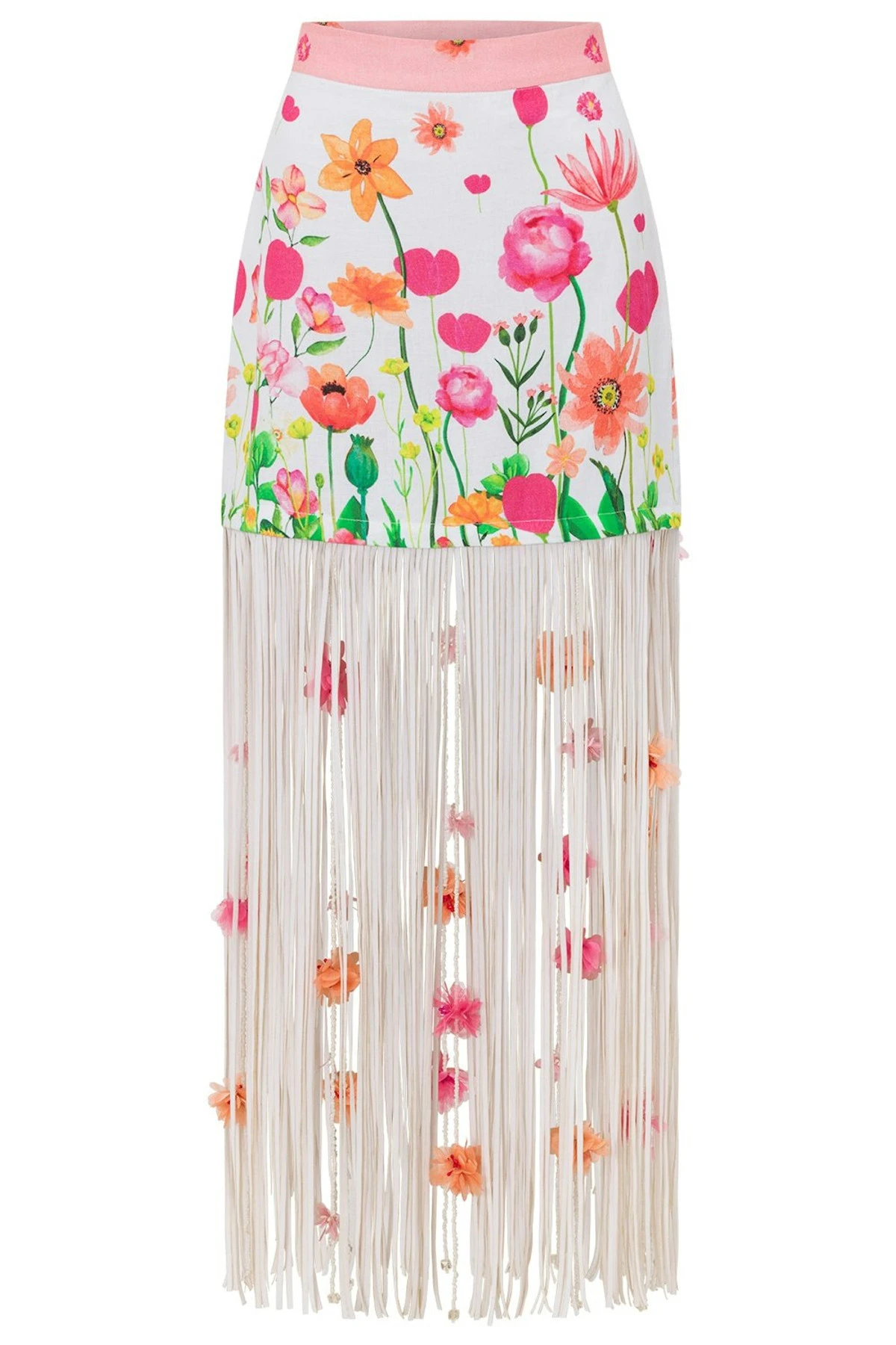 - Linen (80%) / Cotton (20%) skirt with a faux suede tassels