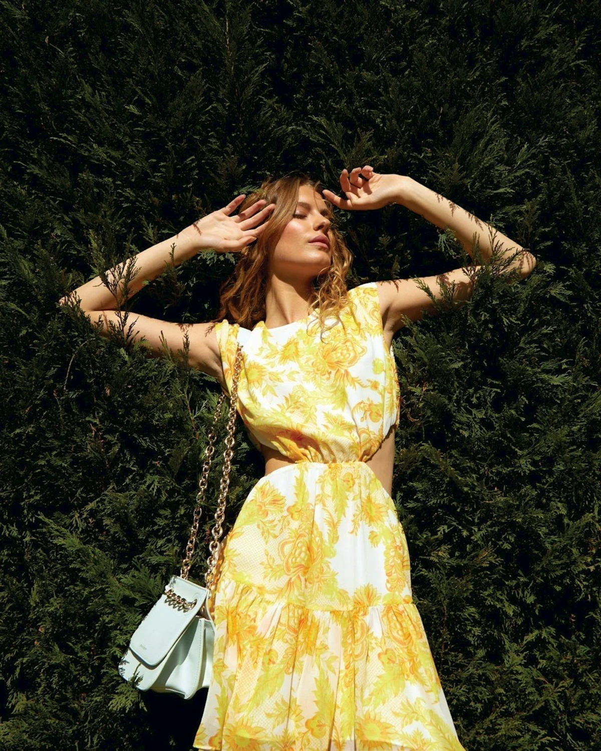 Charm from day to night in the lively printed Lovesick Mini Dress. Airy side cutouts add sunshine-ready style which transitions perfectly into a night of cocktails.