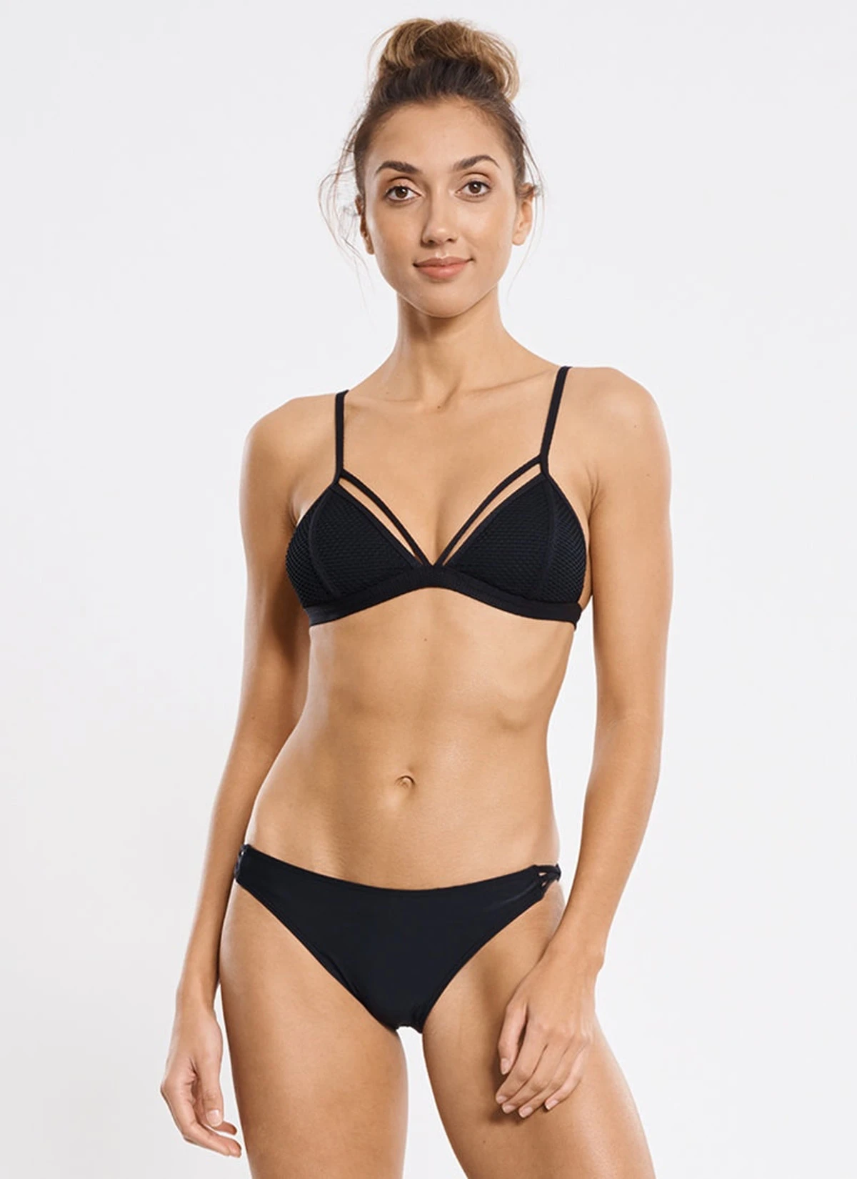 The Ariana Triangle is a must-have bikini top. Designed with textured Jacquard fabric and featuring front strap details and a clip back, this chic triangle will set you apart this summer.