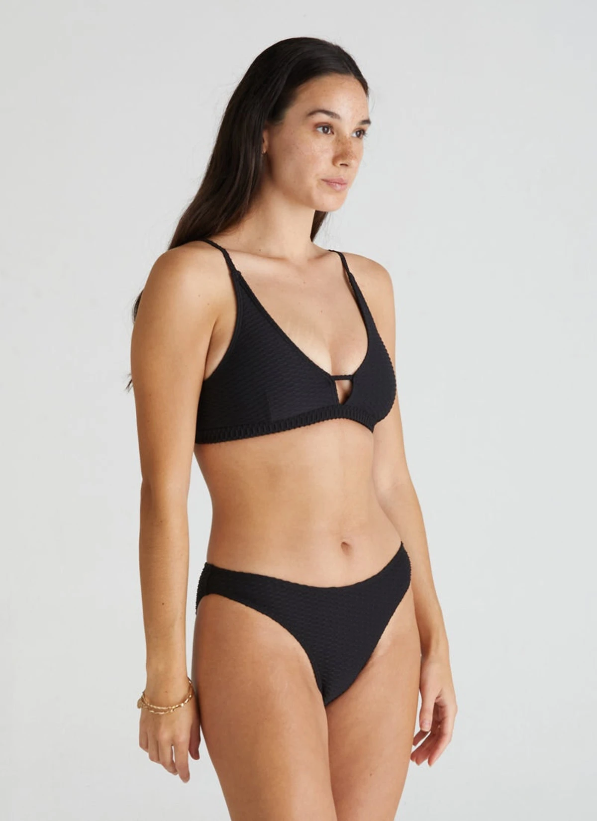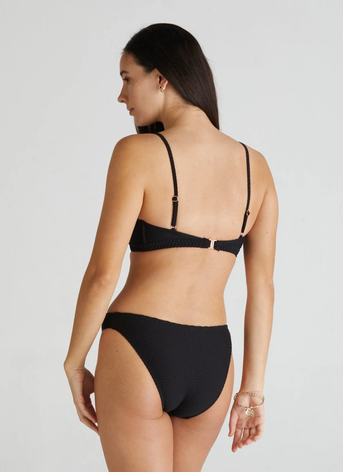 Made from recycled textured jacquard fabric, the Jennifer Hipster Pant is a timeless bikini bottom, offering moderate coverage and a comfortable hipster fit.