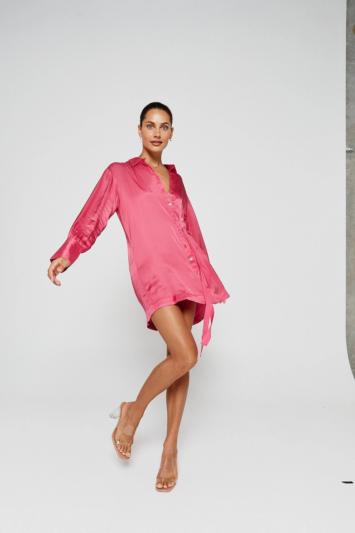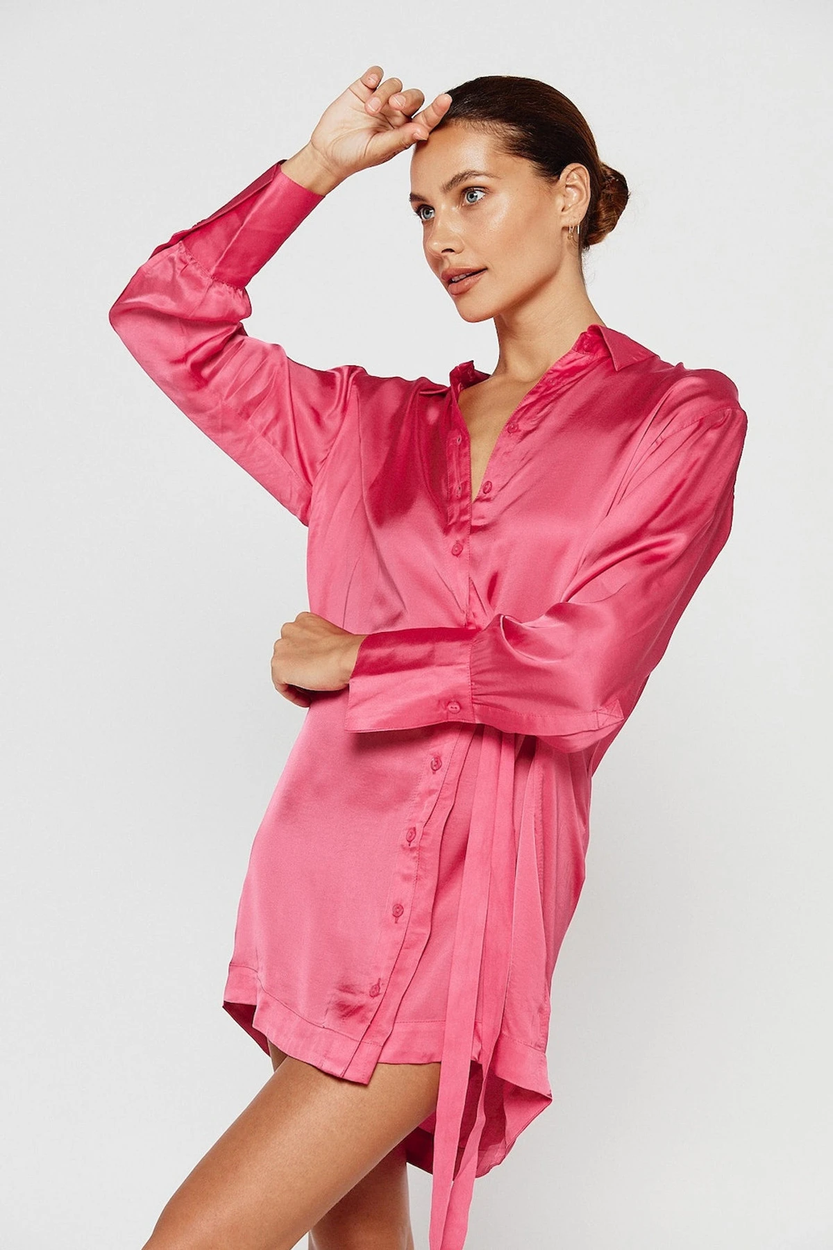The Monroe Shirt Dress crafted from a silky Viscose Blend is a new take on the classic shirt dress trend. Featuring a value down centre front and tie on side to cinch in the waist, this dress is versatile for any occasion this Winter. Style with your favourite Winter accessories.