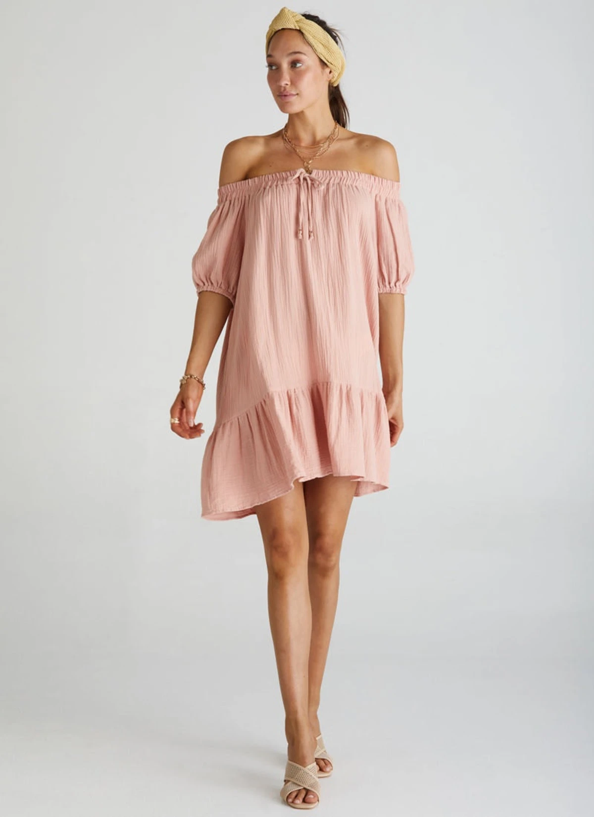 Slip into our relaxing Off Shoulder Dress after a day at the beach. Designed for style, convenience and comfort, this piece has a tie front drawstring, elasticated shoulders and is a must have fashion staple.