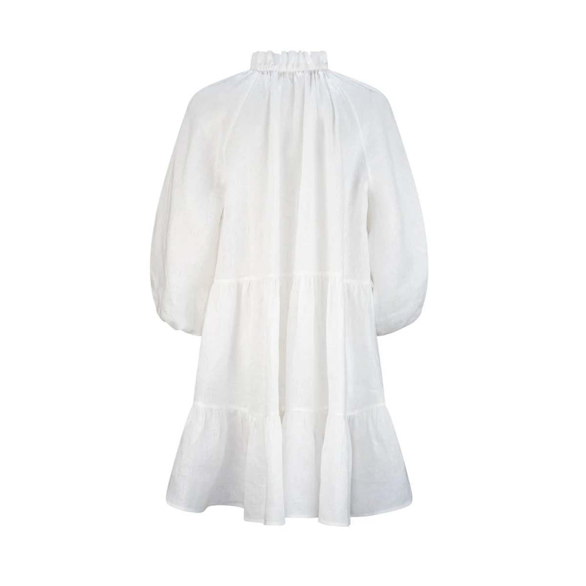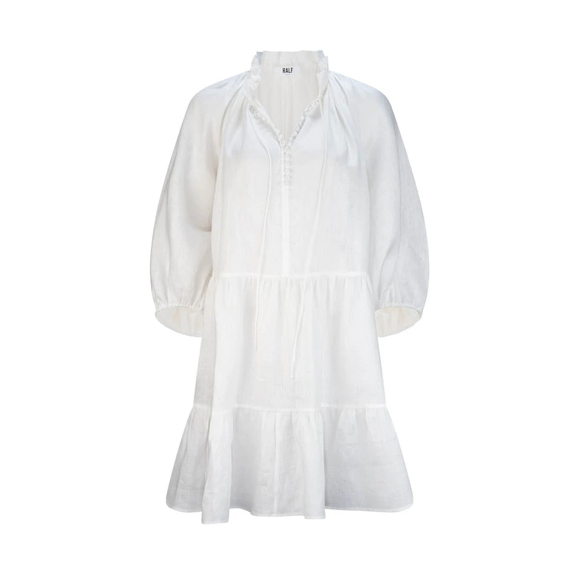 The Pebbly dress is rendered in a premium linen fabrication with a beautiful soft hand feel. It features a drawstring neckline that can be worn several ways. The wide swing silhouette with, self covered value front detail features slightly voluminous 3/4 sleeves with elastic cuffs.