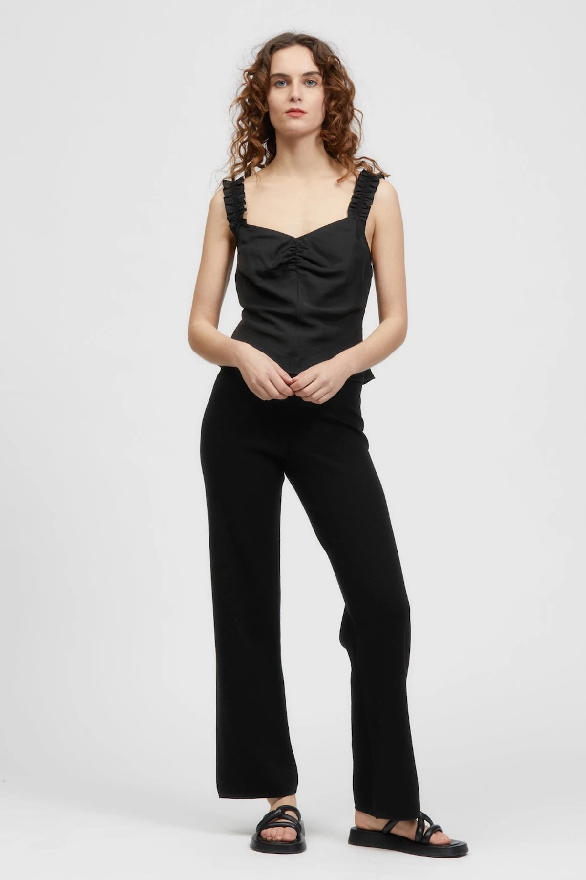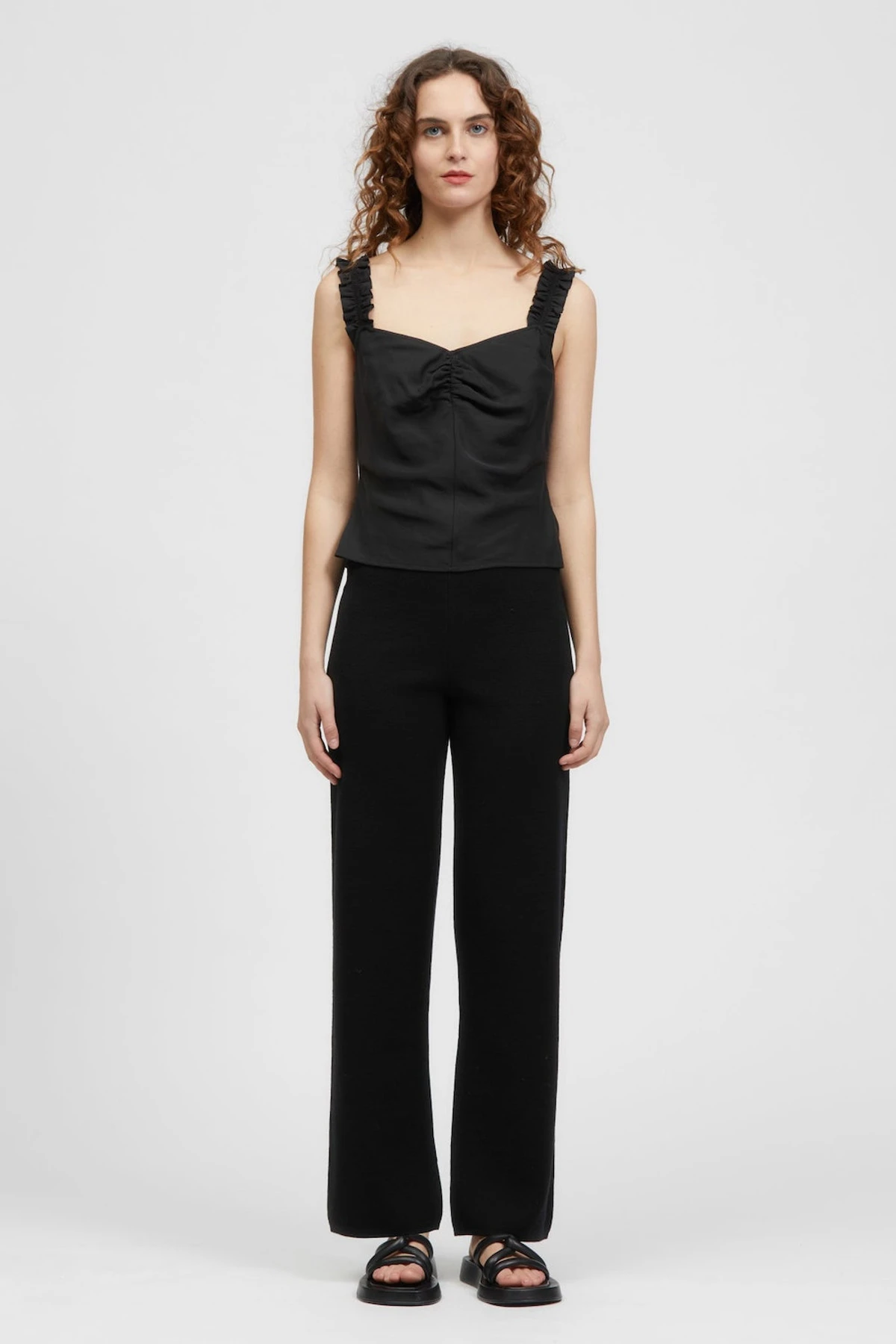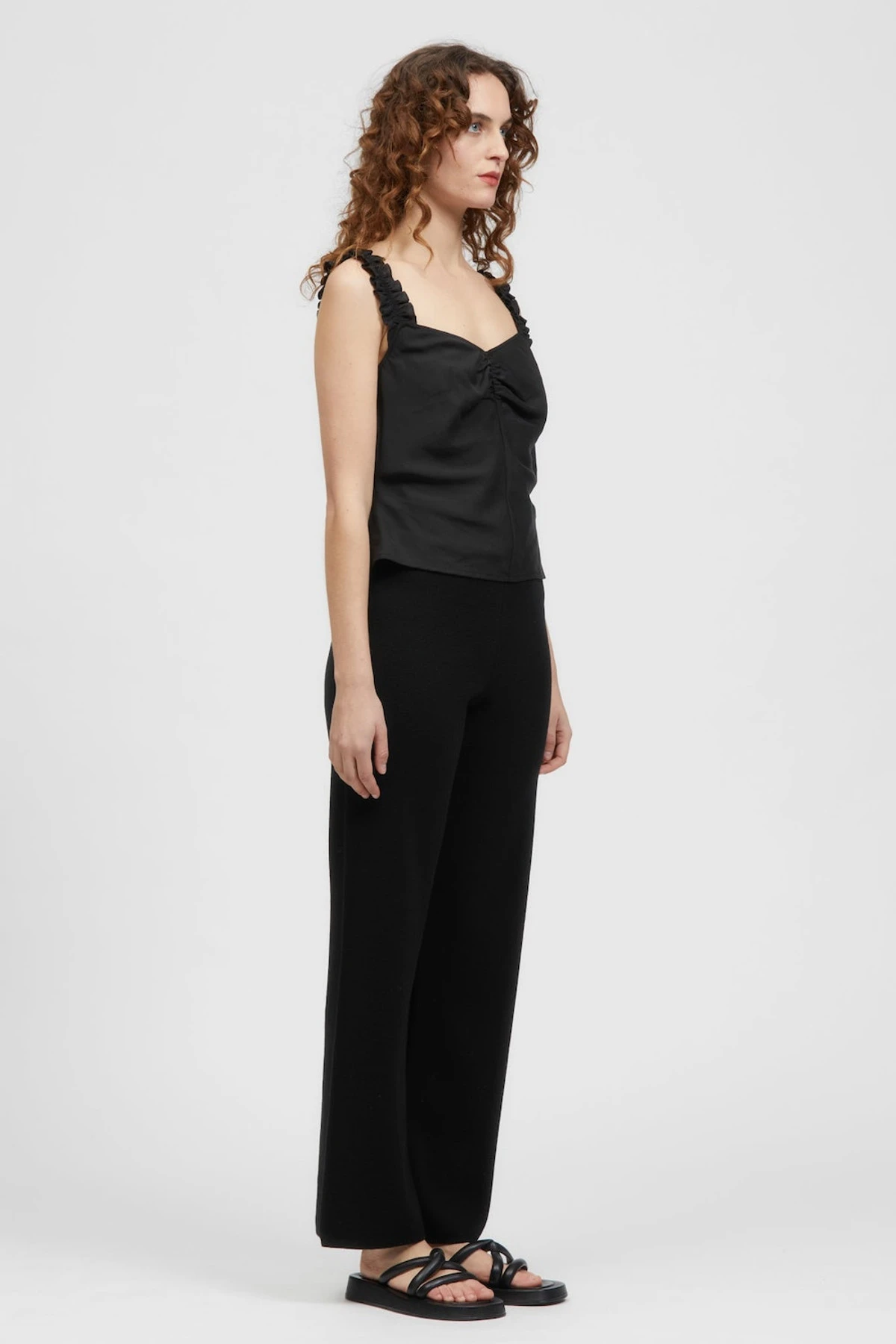 The Saba Cami is a sleeveless style with soft gathering at the centre front. This style has elasticated frill straps and a fitted bodice. Made in a soft Tencel fabrication. This style can be paired back with your existing wardrobe favourites or with the Poa Mini Skirt in matching fabric as a set.