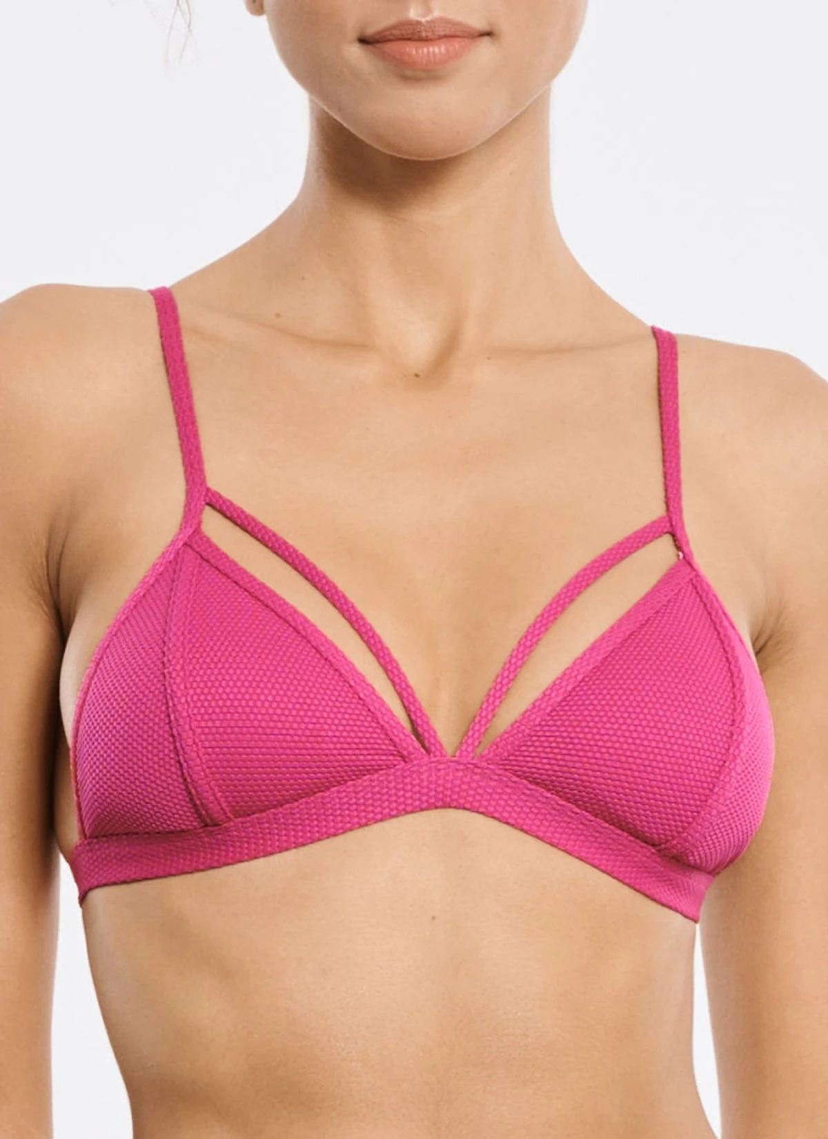 The Ariana Triangle is a must-have bikini top. Designed with textured Jacquard fabric and featuring front strap details and a clip back, this chic triangle will set you apart this summer.