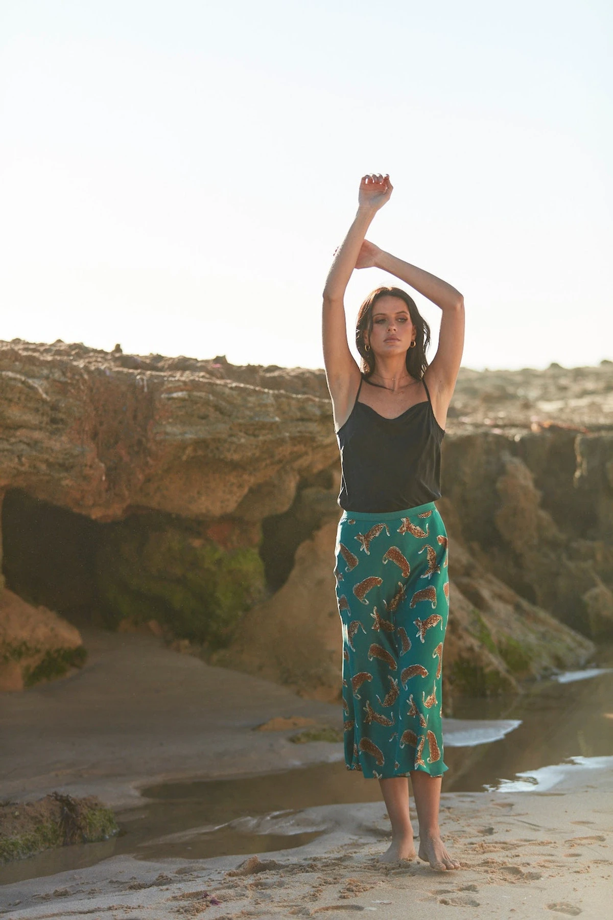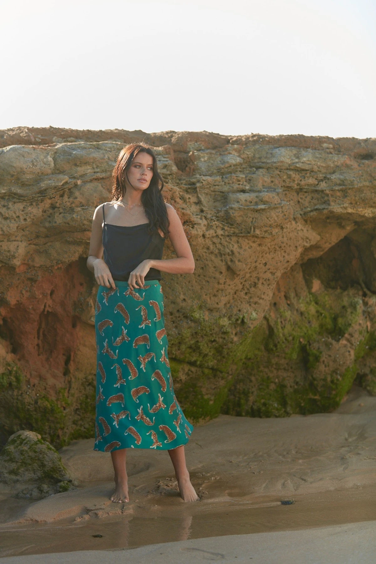 The midi length Tallow skirt has a forgiving elastic waist and is cut on the bias for movement and comfort. It has extra room through the hip and a slight kick at the hem line. The Tallow skirt is great dressed up with a camisole or worn with a cosy knit and paired back with boots. Turn the feature elastic waist band inside for a more subtle look. The print is an exclusive Ralf Studios print.