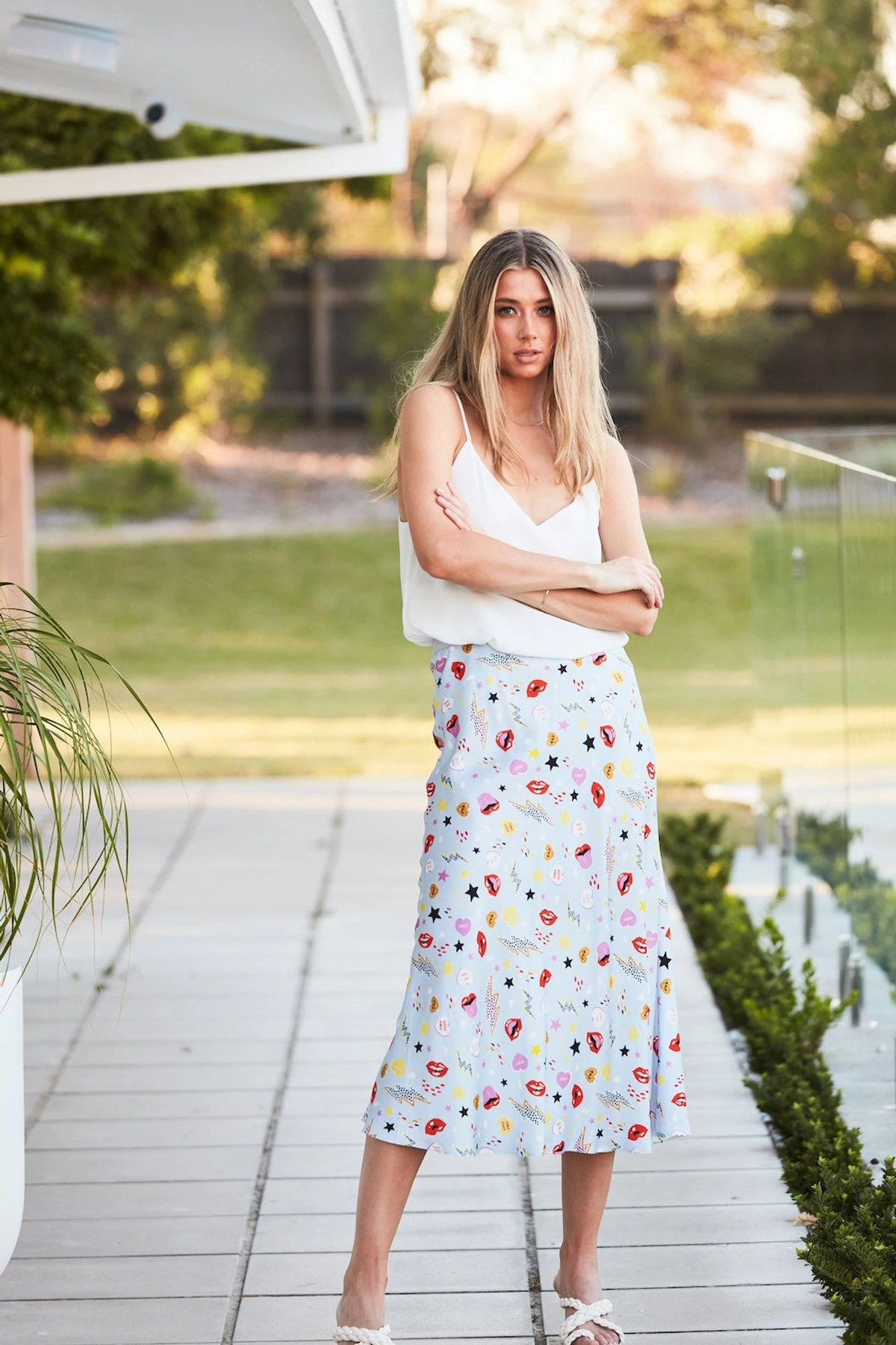 The midi length Tallow skirt has a forgiving elastic waist and is cut on the bias for movement and comfort. It has extra room through the hip and a slight kick at the hem line. The Tallow skirt is great dressed up with a camisole or worn with a cosy knit and paired back with boots. Turn the feature elastic waist band inside for a more subtle look. The print is an exclusive Ralf Studios print.