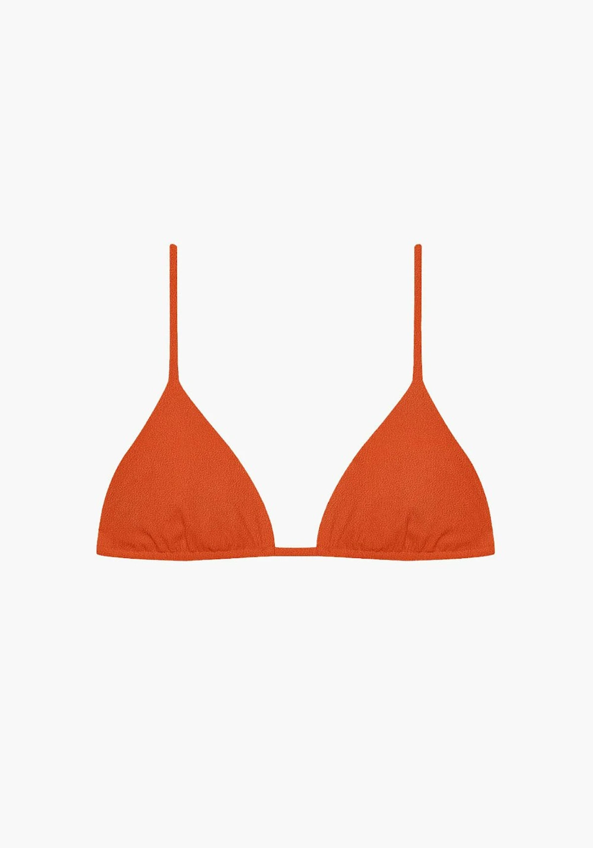 Elevate your beach look with the VIA TOP HORIZON by Jade Swim. This classic triangle bikini top boasts clean lines and an adjustable tie for a perfect fit. With no hardware or padding, this top offers comfort and sophistication in one.