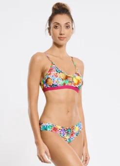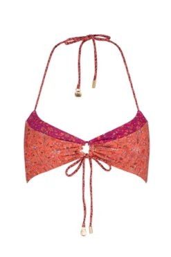 Alexandria Maisy V Neck Tri Bikini Top – Raspberry/Orange Floral